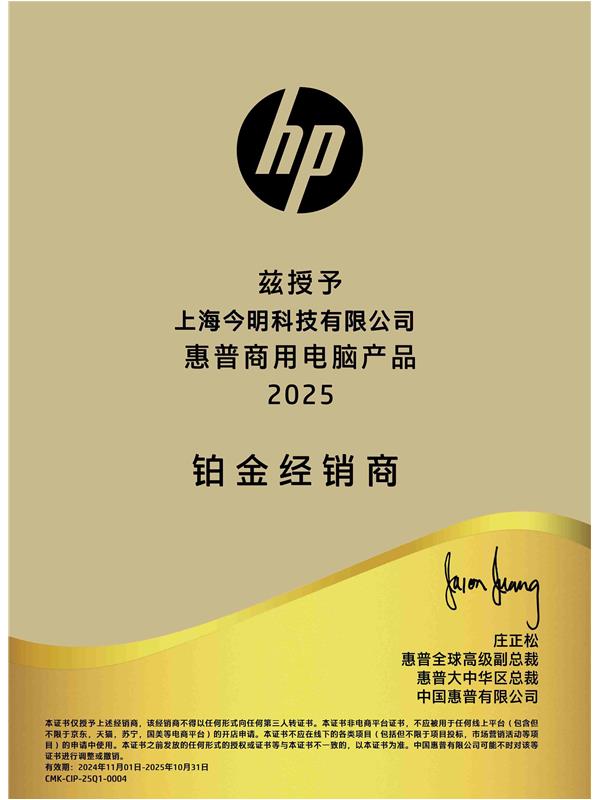 • 惠普商用電腦產品2025鉑金經銷商
